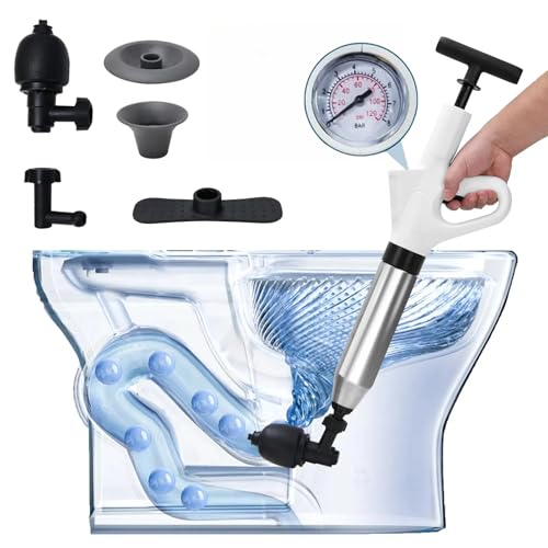 HOMOCONO Piston à Pression d'air Haute Pression pour Toilettes et Lavabo, Déboucheur Robuste en Acier Inoxydable et PP, Accessoire pour Salle de Bain Cuisine