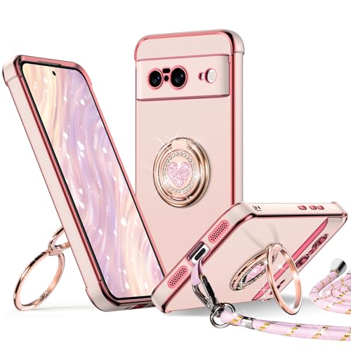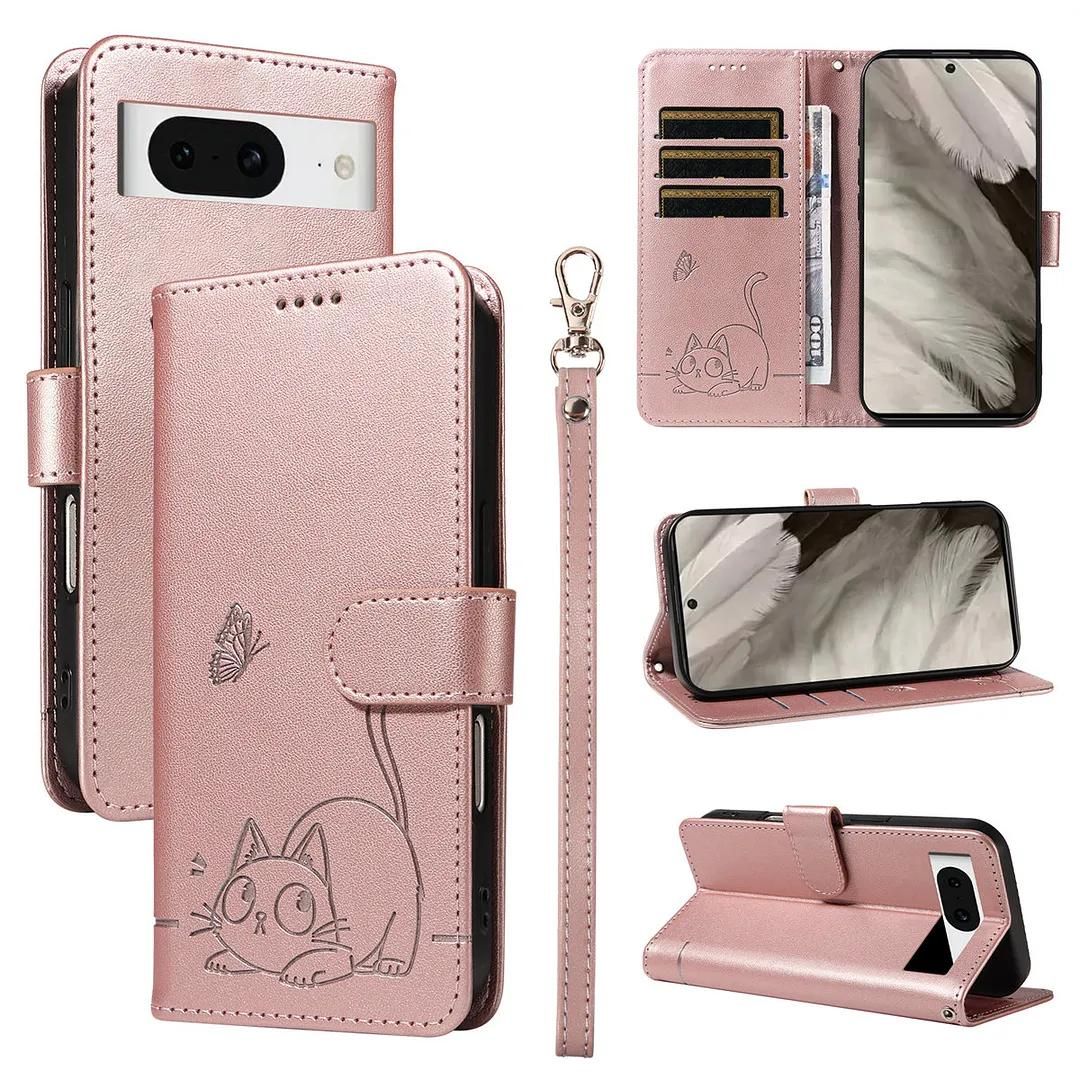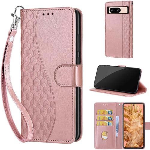 Generic Étui compatible avec Google Pixel 8 (couleur : rose) étui portefeuille à rabat en cuir fleur