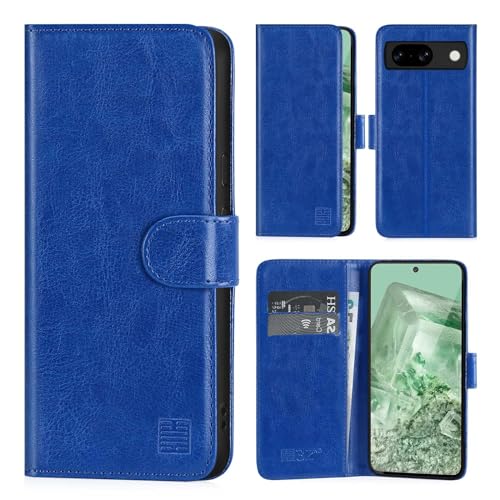 32nd Étui Portefeuille en Cuir PU Flip Coque pour Google Pixel 8A, Housse avec Blocage RFID Fentes CB, Fermeture Magnétique et Fonction de Support - Bleu Foncé