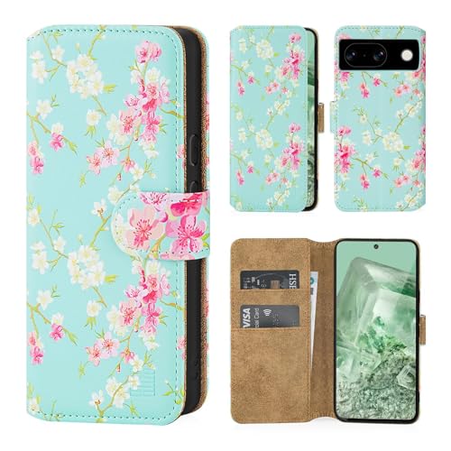 32nd Série Florale 3.0 - Étui Portefeuille en Cuir PU Design Coque pour Google Pixel 8A, Housse avec Blocage RFID Fentes CB, Fermeture Magnétique et Fonction de Support - Printemps Bleu