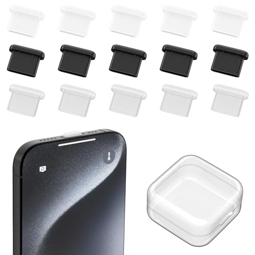 Bouchon Anti Poussière USB C(Lot de 15 pcs),USB C Housse en Silicone Anti Poussière de Type C pour iPhone 16e 17 Pro Max Samsung Galaxy A17 A16 A36 A56 A55 A35 A25 S24 S23 Ultra Pixel 8 Pro 9a POCO X6