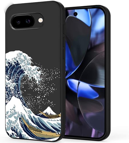 Unov Coque Compatible avec Pixel 9a (2025) 5G avec Motif Artistique Grande Vague en TPU Souple Absorption des Chocs Fine Motif gaufré Coque arrière de Protection