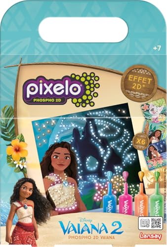 Lansay – PIXELO PHOSPHO 2D – Disney VAIANA 2 – Kit créatif Dessin Phosphorescent Enfant 7 Ans+ – Loisir créatif Enfant Disney – Activité Manuelle sans écran – Dessin Lumineux – Loisirs créatifs