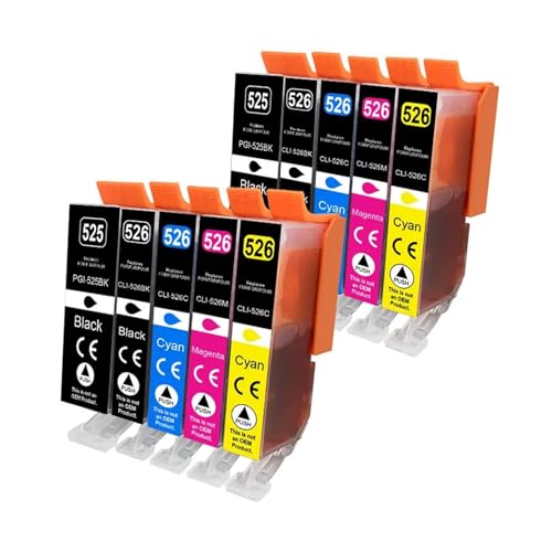 Cartouche d'encre 525 526XL, Compatible for Canon PGI-525 CLI-526 XL Compatible PIXMA iP4850 iP4950 MG5150 MG5250 MG6150 MG8150 MG5350 imprimante(10Pcs (2set))