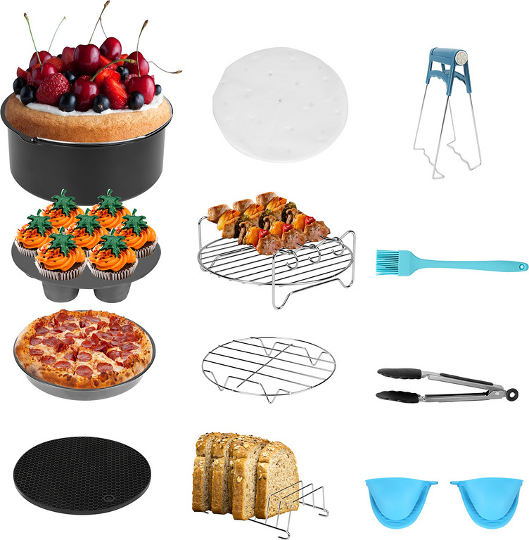 Jiubiaz 12pcs Accessoires friteuse à air chaud Friteuse Grille Four à air chaud Pizza Pan 7