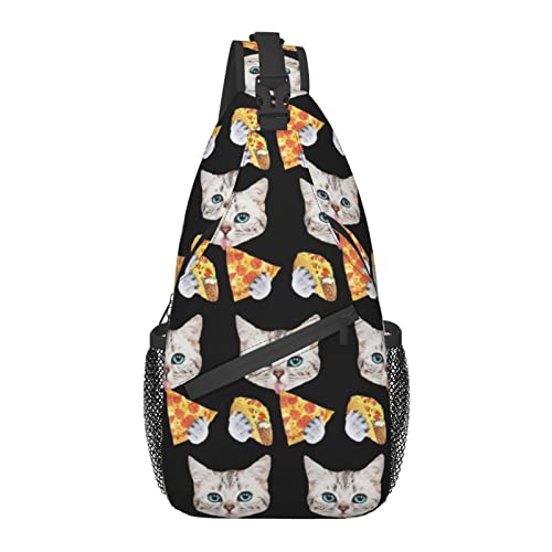 Sac à Dos à bandoulière antivol pour Homme, Sacs de Poitrine Amusants et durables compatibles avec Le Motif de Dessin animé Cat Taco Pizza Noir pour la pêche, Le Cyclisme, la randonnée