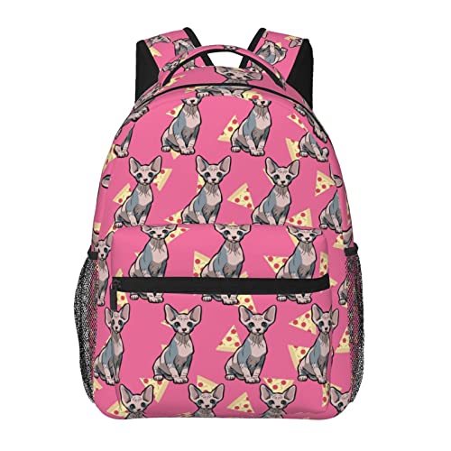Ahdyr Sac à Dos Polyvalent Anti Vol Grande Capacité Cartable Sphynx Chat Taco Pizza Rose Art Voyage Randonnée Sac À Dos Avec Poches Latérales