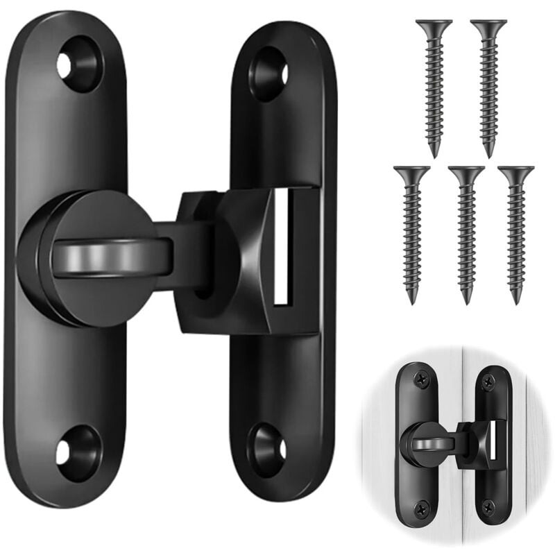 Verrou de Porte Coulissante, 90/180 Degrés Porte Coulissante Loquet, Serrure Porte Interieure avec Vis pour Cuisine, Fenêtre, Chambre (Noir)