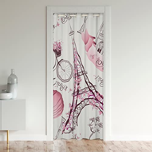 Homewish Rideau de Porte Tour Eiffel pour Couple - Placard D'Entrée Floral Rose, Occultant Romantique pour Filles Femmes, Paysage Urbain de Paris, 86x203 cm