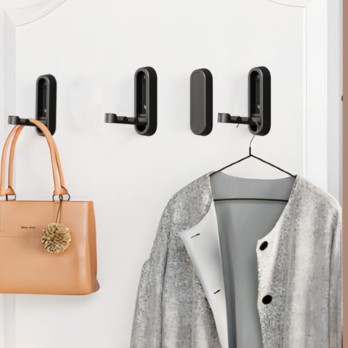 Lot de 4 crochets muraux pliables pour salle de bain, manteaux, peignoirs, sacs à main, solution de rangement pour salle de bain, placard, entrée, piscine et cuisine (noir mat)