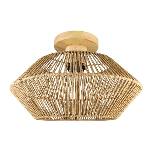 ELINKUME Plafonnier LED Cuisine en rotin tissé à la main, Luminaire Plafonnier Chambre Vintage bohème, petit LED Plafond en corde de chanvre pour couloir salon salle à manger Lampe Plafond en bois