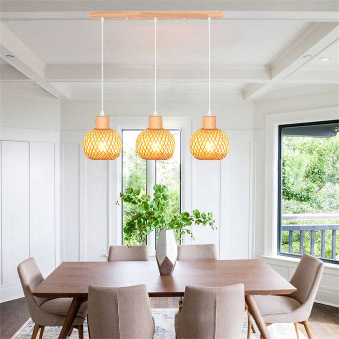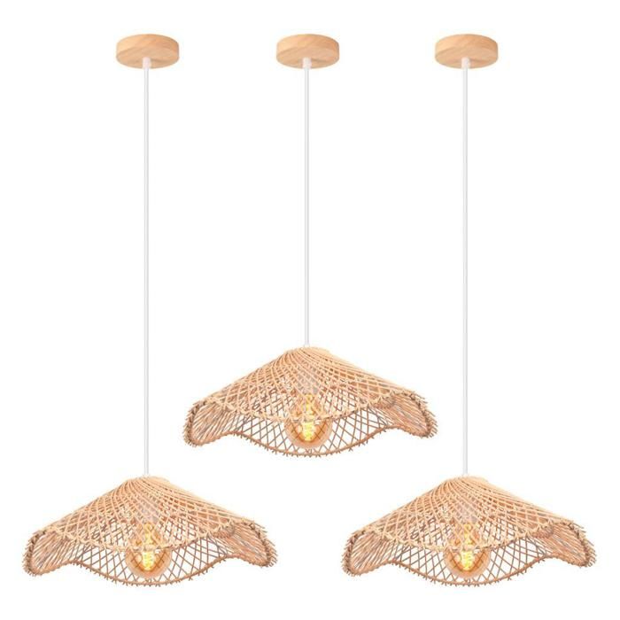 iDEGU 3x Rétro Suspension Luminaire IndustrielE27 Lustre Vintage Abat-jour en Bambou Plafonnier Style Bohème pour Salon Chambre