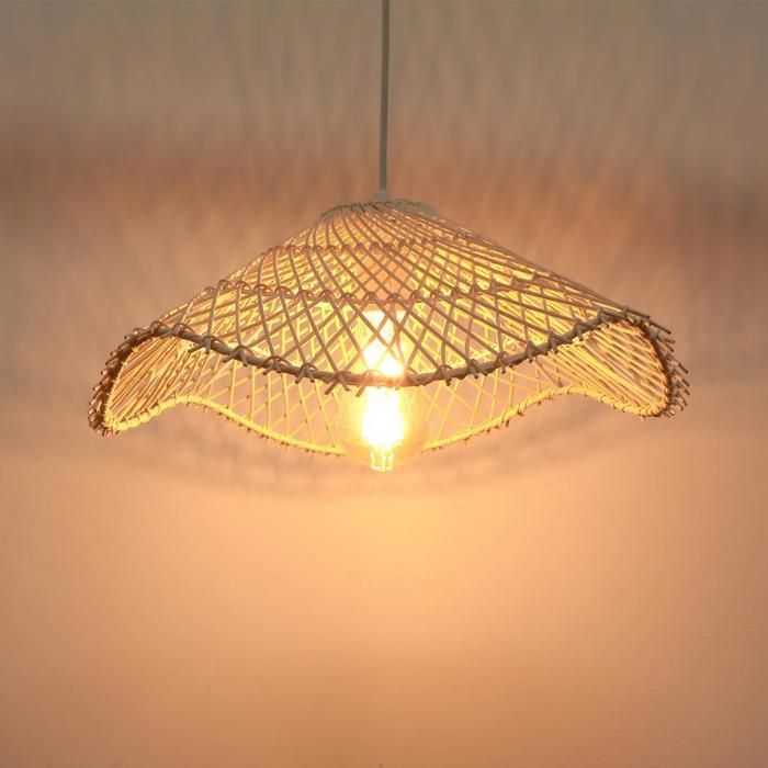 DLGLOLIN Suspension Luminaire en Rotin Vintage Lustre Tissage Abat-jour Lampe de Plafond E27 Éclairage Luminaire Bois Plafonnier Boheme pour Salon Chambre Cuisine