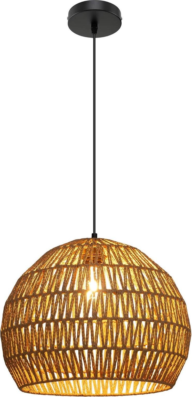 Eglo Suspension luminaire Hettonle, lustre bohème pour salon et salle à manger, plafonnier à suspendre en rotin naturel et métal noir, douille E27