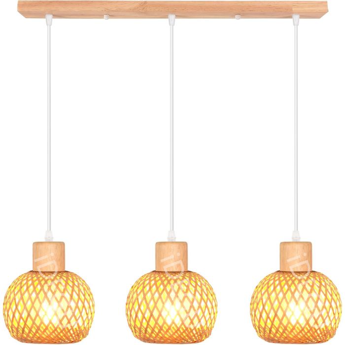 iDEGU 3lampes Suspension Industriel en Bambou et Bois Vintage Lampe 13cm Mini Abat-jour à Boule Rotin Retro Plafonnier Style Bohème