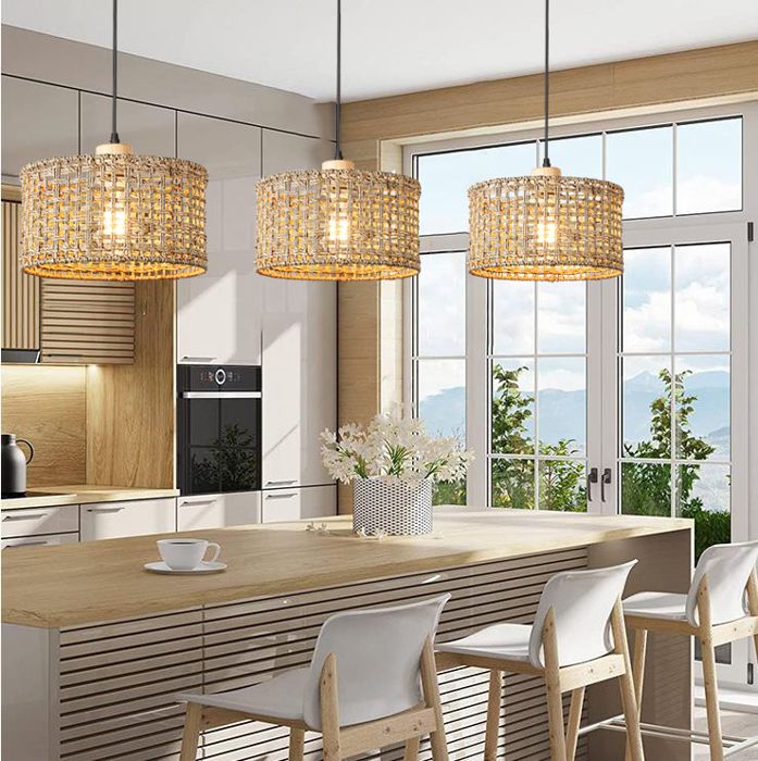 Plafonnier bohème tissé à la main en rotin pour chambre à coucher, cuisine, salon