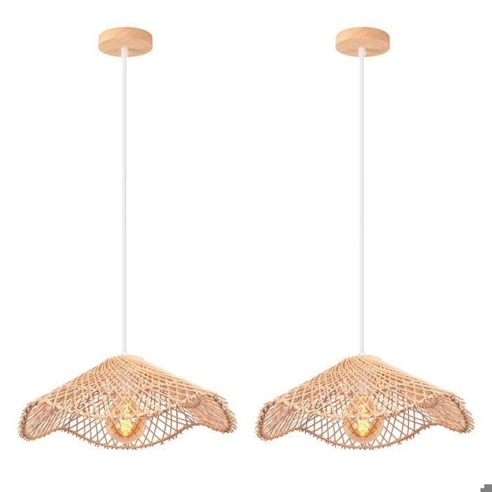 iDEGU 2x Rétro Suspension Luminaire IndustrielE27 Lustre Vintage Abat-jour en Bambou Plafonnier Style Bohème pour Salon Chambre