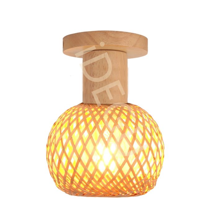 iDEGU Plafonnier Vintage15cm Lampe de Plafond Industriel Abat-jour en Bambou et Bois Design Réglable E27 Plafonnier Style Bohème