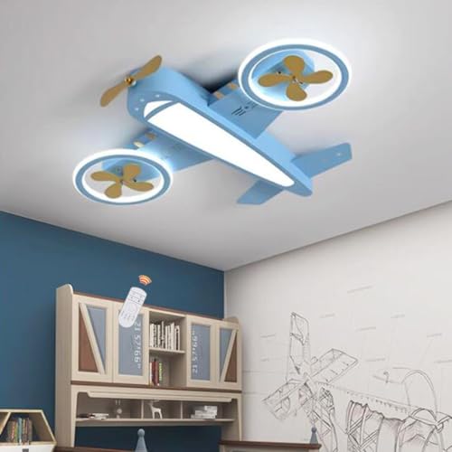 RuiRfh Plafonnier LED moderne créatif bleu dessin animé avion design 56W éclairage chambre de bébé lampe avec télécommande Lampe plafond garçon fille chambre dimmable lustre chambre salon restaurant b