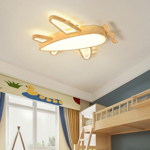 A.1.Coo Plafond Lampe LED Avion De Dessin Animé Plafonnier Bébé Lampe De Plafonnier Dimmable Télécommandée Imitation bois Nursery Lampe Lampe De Plafond for Les Enfants Chambre À Coucher Lustre(52CM)