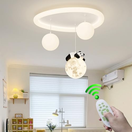 Stesulfr Lampe de chambre d'enfant dessin animé panda plafonnier LED Lampe de Plafond métal blanc 3 boules lustre de chambre dimmable éclairage simple vestiaire chambre de bébé cuisine lampe de chambr