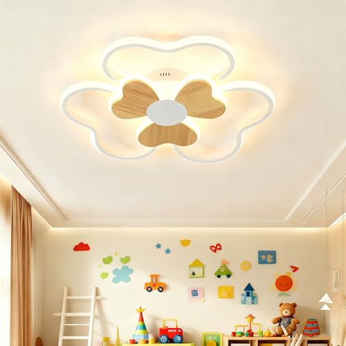 BLMYL Plafonnier LED - 36W Plafonnier Chambre Enfant 42cm Lampe Plafond avec Dimmable Forme fleur Bois avec télécommande 3000K-6000K Plafond Led Chambre à coucher Chambre d'enfant
