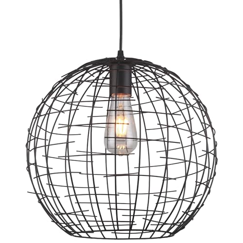 Suspension GTV VIELA - suspension boule en métal noir, Ø 35 cm, design loft & industriel, plafonnier décoratif, douille E27 à une ampoule