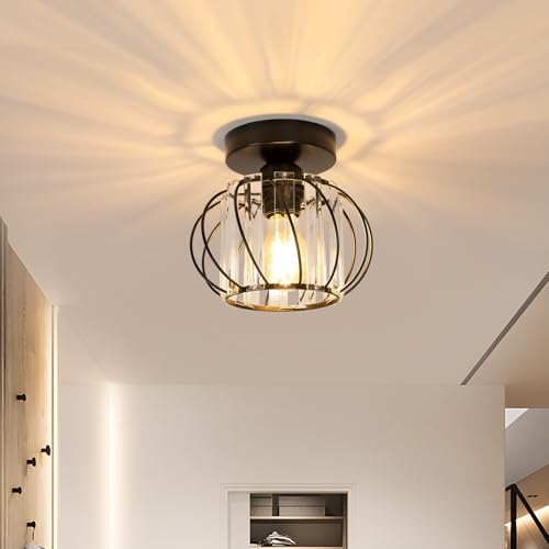 Goeco Plafonnier Cristal, E27 Lampe de Plafond Moderne, Lustre Industriel Vintage avec Abat-jour en forme de Cage pour Entrée Couloir Chambre Salon, Noir