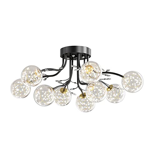 QTANZIQI Spoutnik en Verre Noir – Plafonnier étoile à 9 LED avec Accents de Cristal pour décoration de Chambre de Salon, luminaire d'intérieur