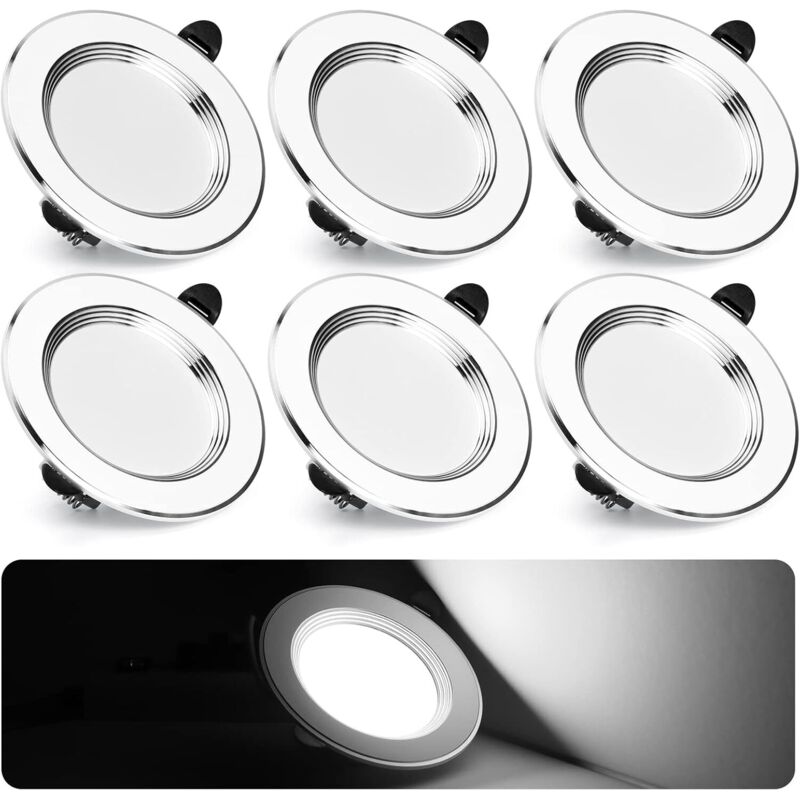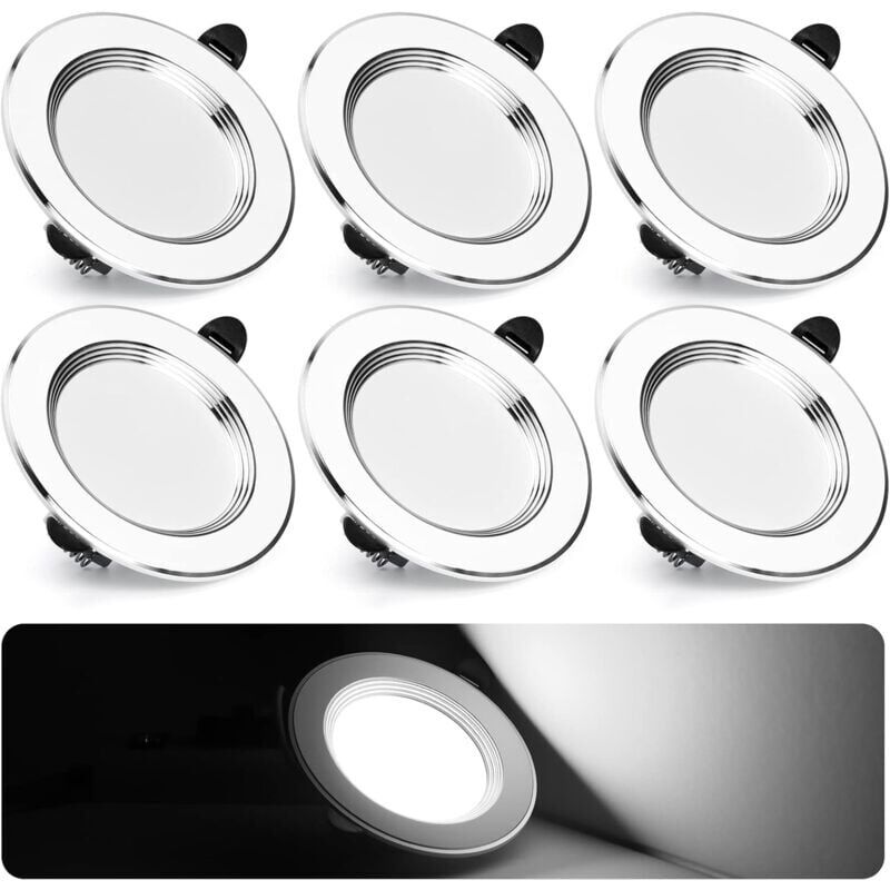 Spot led Encastrable Extra Plat 7W 700Lm Encastré Lampe Plafonnier Blanc Froid 6000K Spot Salle de Bain Aluminium Rond en Métal Lot de 6 pour Salon