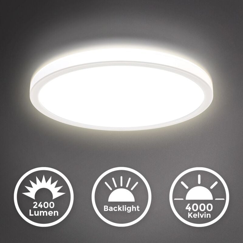 B.k.licht - Panel led, plafonnier dinterieur, extra plat, 18W, 2400Lm, blanche neutre 4000K, éclairage plafond, avec rétro-éclairage, fonction