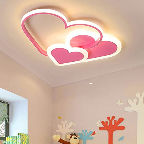 MyLjp Plafonnier Cœur de coeur en forme de crèche Télécommande Lampe de dessin animé Girl Garçon Plafonnier Dimmable Lampe de salon Lampe acrylique,Rose