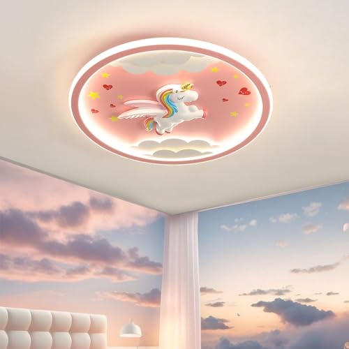 RuiRfh Plafonnier Moderne Maternelle Lampe Plafond Rose Dessin animé Licorne éclairage garçon Fille Chambre éclairage LED Chambre d'enfant Abat-Jour décoration intérieure Lampe Salon Salle à Manger