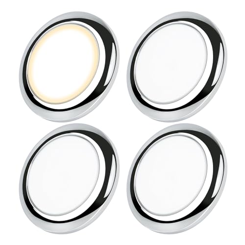 acegoo 12V Plafonnier LED Camping-Car Éclairage Intérieur Deux couleurs (blanc chaud/bleu) Montage à vis, pour Bateau Camion Van Yacht Voiture, Variateur intégré 235lm 3000K 4pcs Chrome Matériel PC