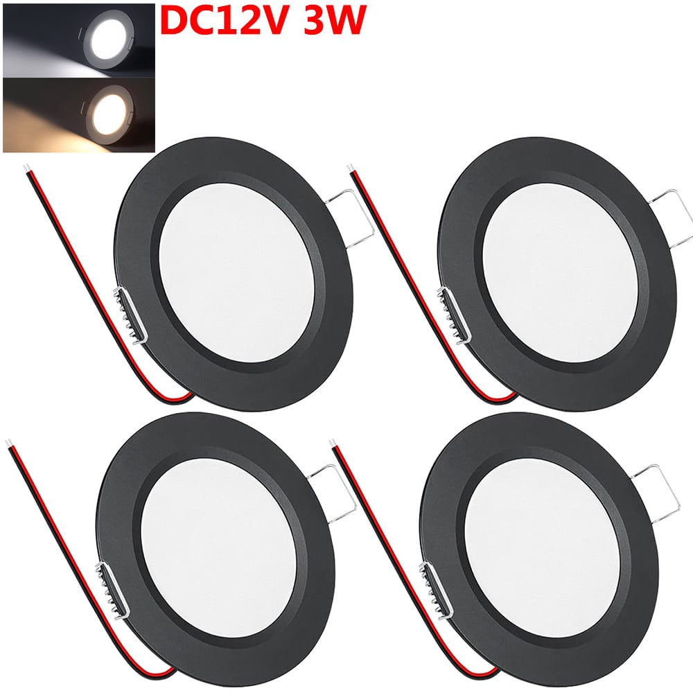 4x DC 12V LED Spot encastrable Camping-car LED Spot à intensité variable, Plafonnier LED plat,3W 15LEDs Spots de plafond pour RV Bateau Caravane Armoire,Blanc chaud