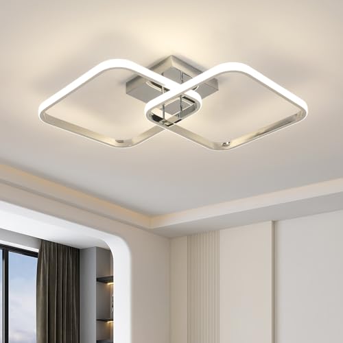 Goeco Plafonnier LED, Design Carré Moderne Lampe de plafond 42W, Chromée Luminaire Plafonnier pour Chambre à Coucher Salon Cuisine Couloir, Lumière Neutre 4500K