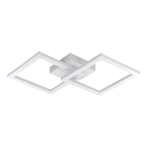 Eglo LED Plafonnier Huerta, lampe de plafond design carrée, lampe de cuisine en métal et plastique blanc, lampe plafond salon cuisine, blanc chaud, L 52,5 cm