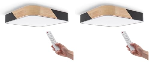 M Ledme - Plafonnier LED Carré Noir 24W avec Télécommande, Réglable 2700K-6500K du Blanc Froid au Blanc Chaud et Intensité, 2400lm, Design Blanc avec Bois Naturel, pour Salle de Bain, Cuisine
