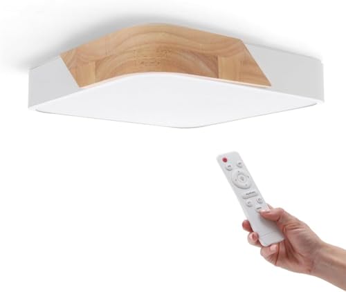 M Ledme - Plafonnier LED Carré Blanc 24W avec Télécommande, Réglable 2700K-6500K du Blanc Froid au Blanc Chaud et Intensité, 2400LM, Design Blanc avec Bois Naturel, pour Salle de Bain, Cuisine