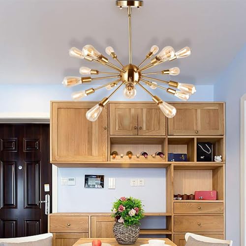 Mengjay Lustre Sputnik Vintage,18 Lumières Moderne Suspension Luminaire en Metal,Lustres Plafonnier Salon,E27 Plafonnier Industriel pour Salon Chambre Cuisine Bar Café (Or, 18 Lampes)