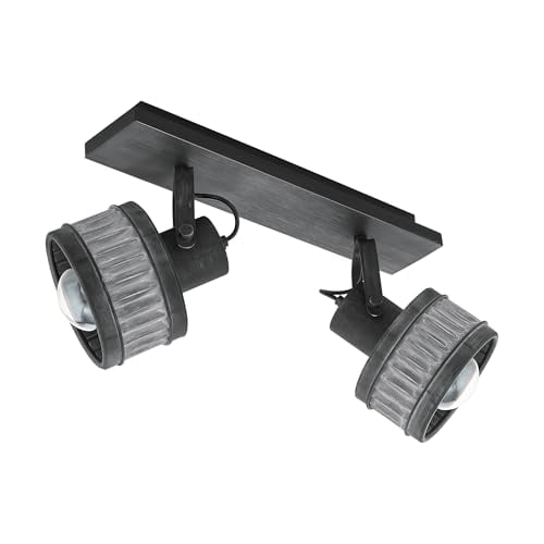 Eglo Plafonnier Turrock avec 2 spots orientables, luminaire au style vintage et industriel pour salon et chambre à coucher, lampe de plafond en métal noir avec patine grise, douille E27