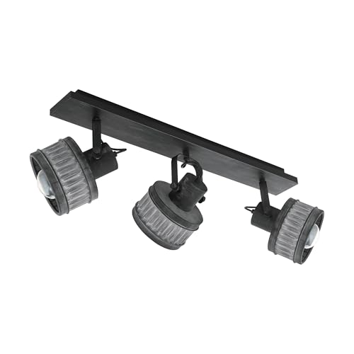 Eglo Plafonnier Turrock avec 3 spots orientables, luminaire au style vintage et industriel pour salon et chambre à coucher, lampe de plafond en métal noir avec patine grise, douille E27