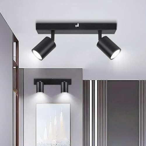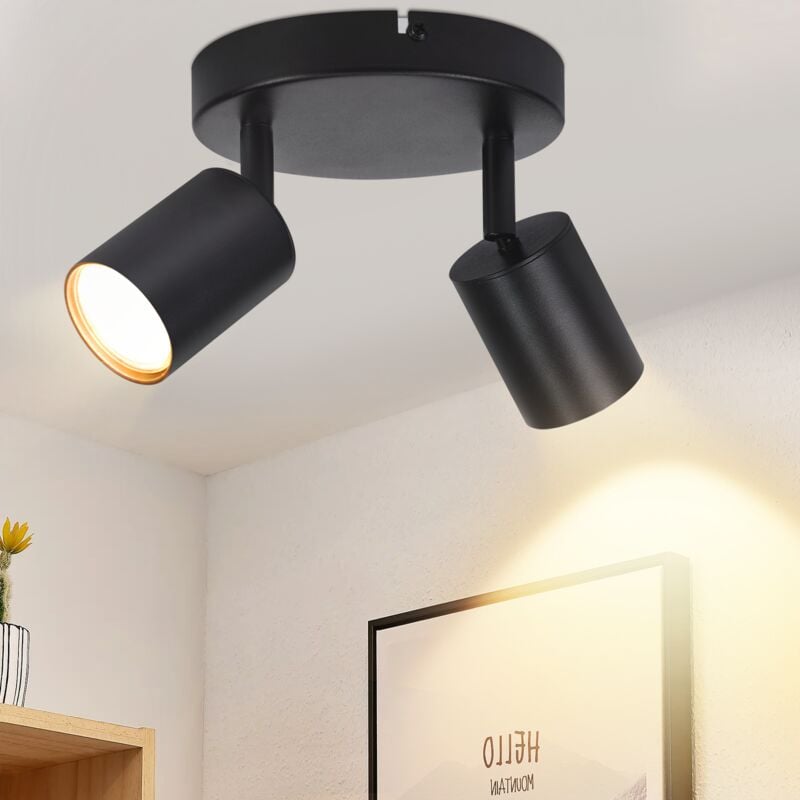 GBLY Plafonnier Spot de Plafond Noir 2 Ampoules : Spots de Plafond Spots de Plafond GU10 Lampe de Couloir Moderne Pivotante à 330° Spot Mural Rond