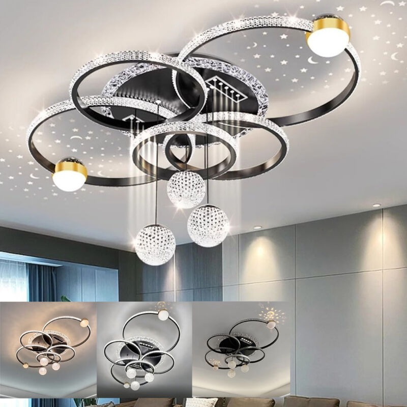 AUTRUCKER Plafonnier noir, spot de salon, lustre à intensité variable, 220V/LED. Convient aux pièces à vivre d'une surface d'éclairage de 25à35m².