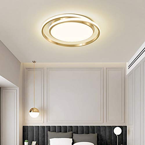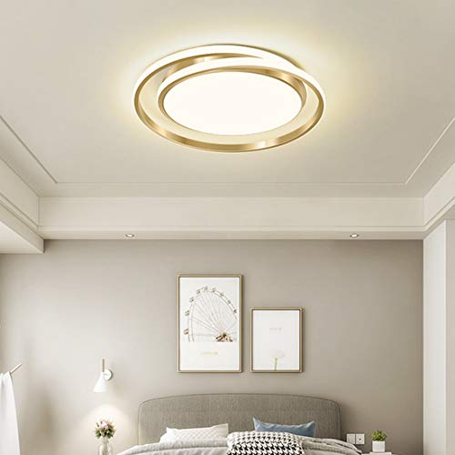 Yexati Plafonnier Bois,Plafond Dimmable 3000K-6000K,Plafonnier Led Télécommandé,32W Luminaire Moderne Pour Le Salon, La Chambre Et Le Couloir, 30CM,Doré