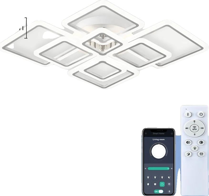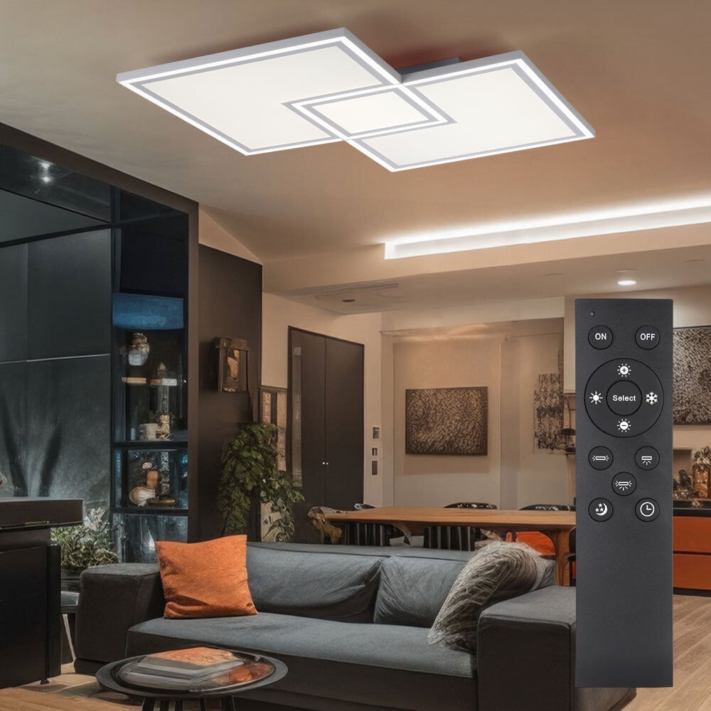 Epochglo Plafonnier LED Salon 52W, Plafonnier LED dimmable avec télécommande, Plafonnier LED avec fonction mémoire et minuterie pour chambre, couloir, cuisine, bureau, salle à manger, balcon