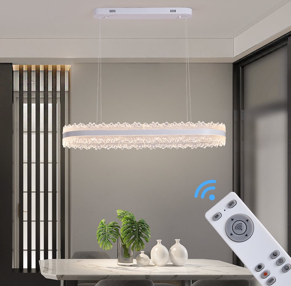 Bellastein Lampe de Salon Dimmable avec Télécommande, Plafonnier LED Chambre Plafonnier Moderne Métal Acrylique Pendentif Lumière pour Salle d'étude, Cuisine (or-, 80cm-72W)
