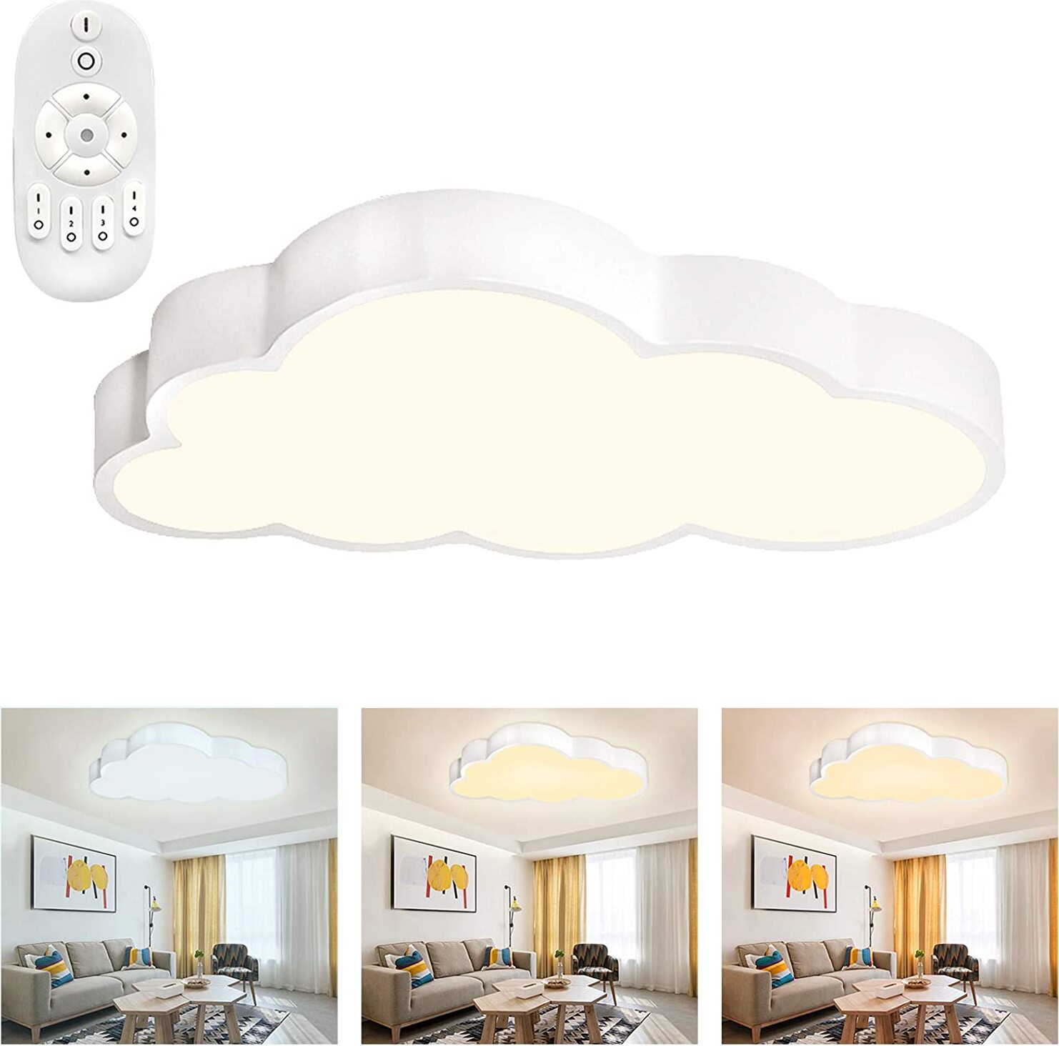 LARS360 Dimmable 48W Plafonnier avec télécommande Nuages LED Plafonnier ultra-mince Chambre d'enfant Moderne Cartoon Lampe Chambre Cuisine Lampe