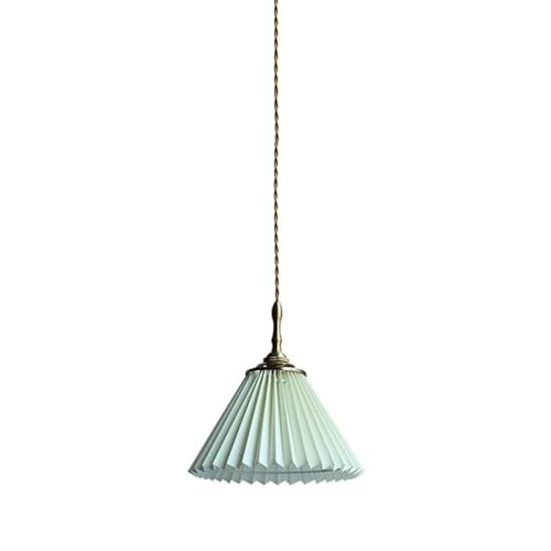 ITOSUI Lustre plafonnier rétro en Tissu plissé, Suspension Vintage en Laiton, Lampe Suspendue de Style Japonais pour Chambre à Coucher, Couloir ou îlot de Cuisine (lumière Neutre, Taille S)