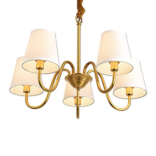 Lustre de style américain E14 entièrement en cuivre, lampe de salle à manger à 5 têtes pour salon, chambre à coucher, plafonnier en tissu nordique, éclairage pastoral de campagne moderne et simple